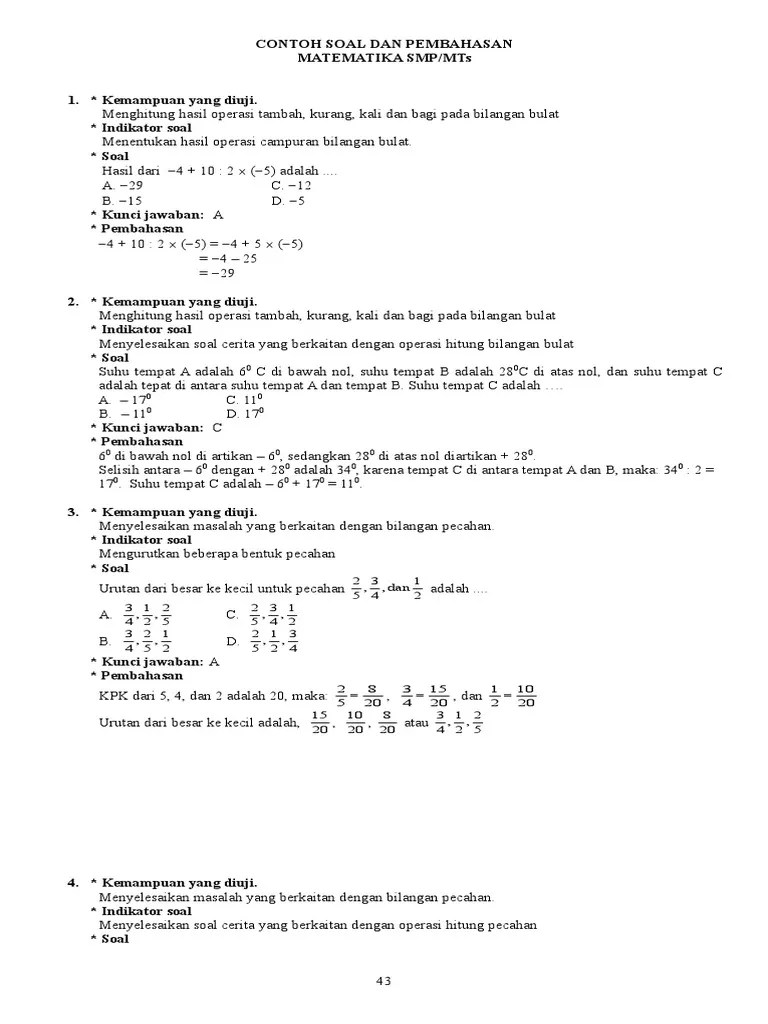 Contoh soal bilangan bulat smp kelas 7 kurikulum 2013.